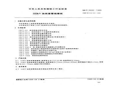 本标准规定了油纸套管绝缘纸的技术规范。本标准适用于制造500kV级油纸电容式套管用的绝缘纸。2引用标准