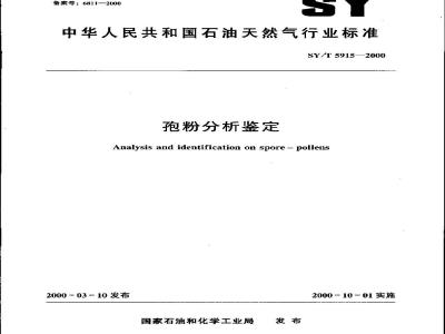 SY/T 5915-2000 孢粉分析鉴定 SY/T5915-2000 标准下载解压密码:www.bzxz.net
