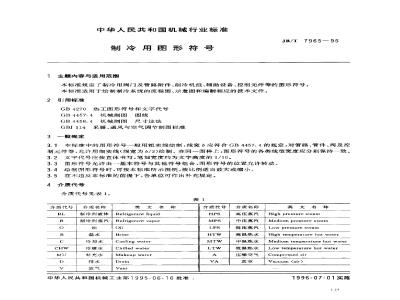 本标准规定了制冷用阀门及管路附件、制冷机组、辅助设备、控制元件等的图形符号。本标准适用于绘制制冷系统的流程图、示意图和编制相应的技术文件。2引用标准