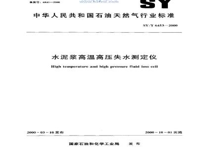 SY/T 6453-2000 水泥浆高温高压失水测定仪 SY/T6453-2000 标准下载解压密码:www.bzxz.net