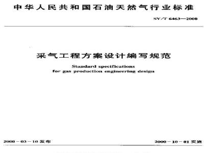 为了规范来气工程方案设计编制的基本原则、依据及主要内穿,以确保所缩制方案的科学性、先进世与可梁作性,选一步促进气出(峻)高效益、高采收率地开发、特制定本标准。本标的附录A是标准的阳录,