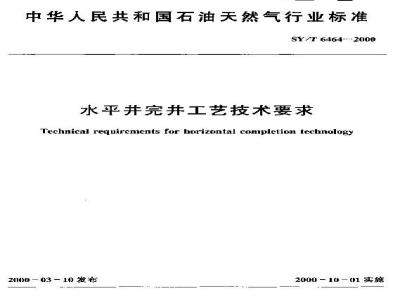 SY/T6253—1996水平共于挂本规见5Y/1626K1996准含管洗推存作法SY/T6332—1997水平软逆接制技术SY/6333—1997水平卉钻非工艺及身回量要求3水平并完井工艺的总体要求