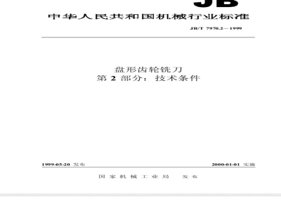 JB/T 7970.2-1999 本标准是对 JB/T 7970.2-95《盘形齿轮铣刀 技术条件》的修订。修订时,删除了性能试验一章,并按有关规定进行了编辑性修改,技术内容未改变。 本标准是 JB/T 7970《盘形齿轮铣刀》系列标准的一部分,该系列标准包括两部分: JB/T 7970.1:基本型式和尺寸 JB/T 7970.2:技术条件 本标准规定了盘形齿轮铣刀(以下简称铣刀)的技术要求,标志和包装的基本要求。 本标准适用于基准齿形角为 20°,模数从 0.3~16mm 的用于加工直齿渐开线圆柱齿轮的铣刀。 本标准于 1988 年以 GB 9063.2-88 首次发布,于 1996 年 4 月调整为 JB/T 7970.2-95。 JB/T 7970.2-1999 盘形齿轮铣刀 第 2 部分:技术条件 JB/T7970.2-1999 标准下载解压密码:www.bzxz.net