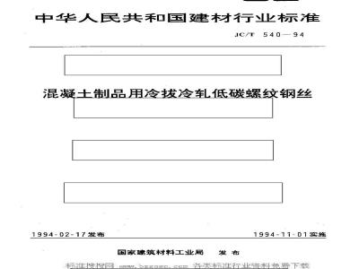 JC/T 540-1994 混凝土制品用冷拔冷轧低碳螺纹钢丝 JC/T540-1994 标准下载解压密码:www.bzxz.net