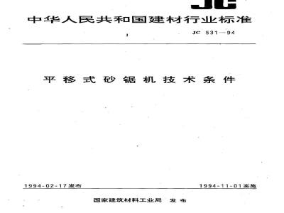 本标准适用于锯切天然石料用的平移式砂锯机(以下简称砂锯)。 JC 531-1994 平移式砂锯机技术条件 JC531-1994 标准下载解压密码:www.bzxz.net