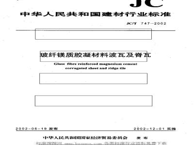 JC/T 747-2002 玻纤镁质胶凝材料波瓦及脊瓦 JC/T747-2002 标准下载解压密码:www.bzxz.net