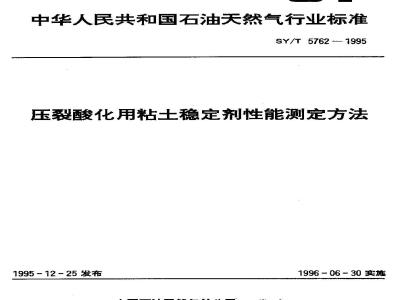 压裂酸化用粘士稳定剂性能测定方法1995-1225发布