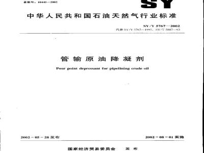 SY/T 5767-2002 管输原油降凝剂 SY/T5767-2002 标准下载解压密码:www.bzxz.net