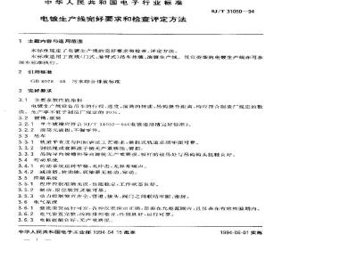 本标准规定了电镀生产线的完好要求和检查、评定方法。SJ/T31050—94