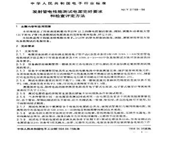 3.1.1对于指示电表的鉴定校准应用高于被鉴定电表精度两个级别的标准进行。对于电源设备脉冲重复频率或振荡重复频率的测量应保证溯量相对误差不大于土2%对于脉冲波形参数的鉴定应用分辨率大于5%t的示波器进行。3.1.2本标准2.1.3中灯丝电压用符合2.1.4的电表直接在谢试管脚检查。3.1.3本标准2.1.2中第-~栅极和其他各电极电压用符合2.1.4的电表在被测管位各电极引线端检查: