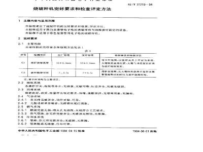 本标规定了烧玻杆机的光好要求和检查、评定方法,本标准适用于黑白显像管电子枪的透镜零件与烧熔玻杆固定的设备。本标准不适用于彩色显像管用电子枪的烧玻杆机。2完好要求