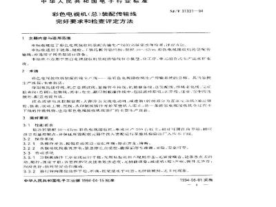 中文名称:彩色电视机(总)装配传输线完好要求和检查评定方法