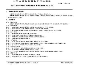 本标准规定了洗衣机升降机的究好要求和检查,评定方法。SJ/T 31364—94
