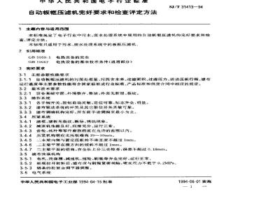 本标准规定了电子行业中污水,废水处理系统中使用的自动板框压滤机的完好要求和检查、评定方法。