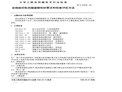 本标准规定了单推板式电热隧道密(以下简称单推板密)的完好要求和检查、评定方法本标准适用丁电子「业企业铁氧体磁性材料预烧、烧成和电子陶瓷素烧、烧釉工序的单推板窑。