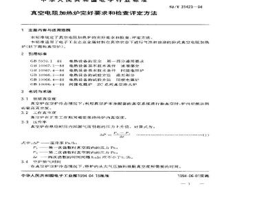 本标准规定了真空电阻加热炉的完好要求和检查、评定方法。SJ/T 31423—94