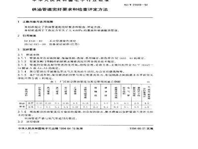 本标准规定了供油管道的完好要求和检查、评定方法。本标准适用于工作压力不大于2.4 5MPa的重油和柴油输送管道。 SJ/T 31449-1994 供油管道完好要求和检查评定方法 SJ/T31449-1994 标准下载解压密码:www.bzxz.net