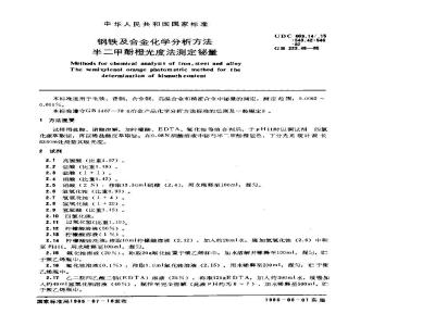 中文名称:钢铁及合金化学分析方法 半二甲酚橙光度法测定铋量