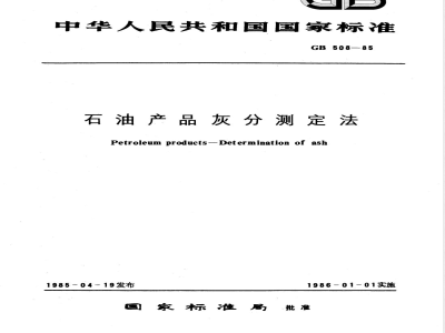 GB/T508一1985《石油产品灰分测定法》第1号修改单本修改单业经国家技术监督局于1992年9月29自以技监国标发[1992]214号文批准,自1993年2月1日起实施。