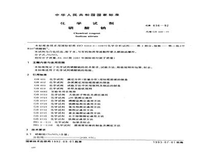 GB/T 636-1992 化学试剂 硝酸钠 GB/T636-1992 标准下载解压密码:www.bzxz.net