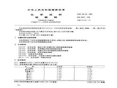 GB/T 665-1988 化学试剂 硫酸铜 GB/T665-1988 标准下载解压密码:www.bzxz.net