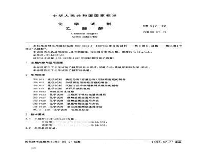 GB/T 677-1992 化学试剂 乙酸酐 GB/T677-1992 标准下载解压密码:www.bzxz.net