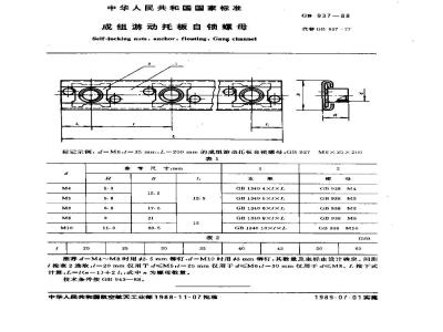 GB/T 937-1988 成组游动托板自锁螺母 GB/T937-1988 标准下载解压密码:www.bzxz.net