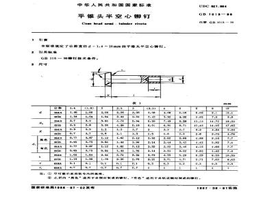 Coe bead semi - tubaler rivets本标准规定了公称直径±=1.4~10mm的平锥头半空心铆钉。引用标准