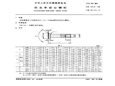 Countersurk head eemi- tublar rivets本标准规定了公称直径d=1.410mm的沉头半空心钾。2引用标准