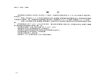 本标准是在GB/T1276-1984《化学试剂氟化铵》的基础上修订的,与前版本相比,放宽了硫酸盐、重金属化学纯指标,取消了铜一项。本标准自实施之日起,同时代替GB/T1276—1984。本标准由中华人民共国化学工业部提出。本标准由全国化学标准化技术委员会化学试剂分会归口。本标准由重庆化学试剂总厂负责起革。本标准主要起草人:蒋兴昌。