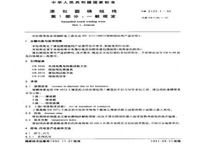 本标准规定了漆包圆绕组线产品通用技术要求、检验规则和包装。本标准适用于本组标准中各部分规定的圆形漆包绕组线。 GB 6109.1-1990 漆包圆绕组线 第1部分:一般规定 GB6109.1-1990 标准下载解压密码:www.bzxz.net