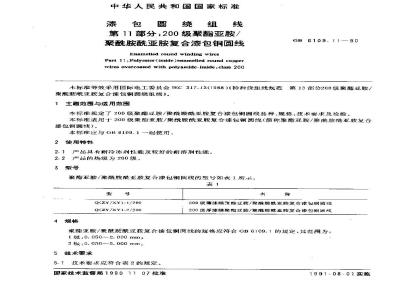 Enamellied round winding wiresPart 11:Polyester (imide)enamelled round copperwires overcoated with polyamidc-imide, class 200GB6109.11—90