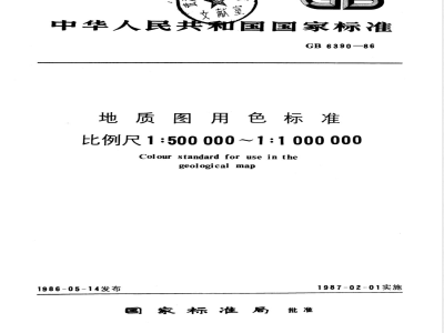 地质图用色标准(简称地质图色标),适用于编制比例尺为1:500000~1:1000000地质图(系图systemmap)的彩色设计和出版印刷用色。也可供编制出版其他比例尺地质图件的用色参考。1标准内容