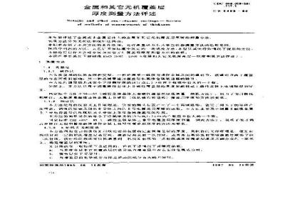 本标准评述了金属或非金属基体上的金属和其它无机覆盖层厚度的测量方法。本标准介绍了不同方法的工作原理,允许测量误差以及某些仪器测量方法的适用范围。本标准可以作为选择金属和其它无机覆盖层厚度测量方法的依据。 GB 6463-1986 金属和其它无机覆盖层 厚度测量方法评述 GB6463-1986 标准下载解压密码:www.bzxz.net