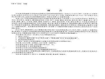 到90年代,随着国际上电子数据交换(EDI)的广泛应用和发展,UN/ECE/WP.4的第19号推荐标准,除增加了在统计方面使用的某些规定的附录A(标准的附录)外,并且作为《联合国用于行政、商业和运输业的电了子数据交换手册》(UN/EDIFACTUNTDID)中推荐采用的数据元。本标准对GB6512--86进行了以下修改和补充:1.增加了前言;