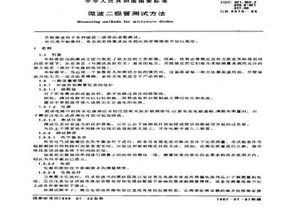 Meaguring methods for microwave diodes本标准适用于各种微波二极管的参数测试。在引用本标准时,有关的具体要求应在相应的详细规范中加以规定。1总则