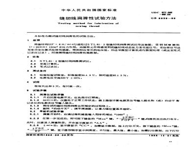 本标准为测试缝纫线润滑性的试验方法。 GB 6839-1986 缝纫线润滑性试验方法 GB6839-1986 标准下载解压密码:www.bzxz.net