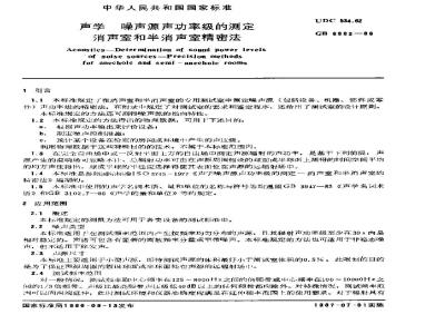 中文名称:声学 噪声源声功率级的测定 消声室和半消声室精密法