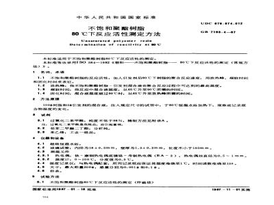 Determination of reactivtty at so C本标准适用于不饱和聚酯树脂80℃下反应活性的测定。本标准等效采用ISO5841982《塑料不饱和聚酯树脂法)》。