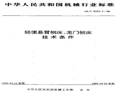 牛忧准规定了一般币途的轻便悬创床,龙门创床的制造和验收的要求,JB/T333-2-96