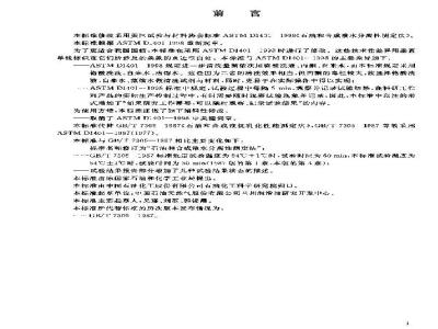 本标惟修改果用美下试验与材料协会标准ASTMD1451998石油和合成离水分离性测定试2。本标推根据ASTMD_4I!!8重新起单为了更适台我国国情,木标准在采用A$TMI401932时进行了修改。这些技术性差异用垂直单载标识在它们所涉及的条款的页空出处,车示准与ASTMDII净的主要举异如下:ASTME140119S8规定进一步清洗盘简依次铬酸选液内酮来冰·而木杯准热定来迅路醛酸滤激,自来水,变爆水,这是固为三者的清洗手相当:丙用的幸较大,献选择酸洗蔽,自来水、蒸演水做清选试剂与材料,同时,史易于在实际操升中得以实现:ASTMD140]--15标准中规定,试验逆程小每陷5mi观率记求试验统果,在科新.L性利产品约实际生产格制过戏中,有时需呈随时观察试验形象并记录,国此,木标准中以注的形式增加了“如果研空工作需要,可以随时观察,录试果的内穿。步便用方便,本标还像了如下缩势性修改:取销了ASTMT:401—198中关链词章,本标准代替GBT73051S87c石油和合成液抗乳化性能谢定然8.GB/T73051987等效采沸ASTMD40-15(7)