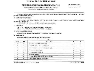 本标准规定了工作电压不超过1000V的管形荧光灯(包括H形、环形和双D型)灯座和启动器座的型式和互换性尺寸。