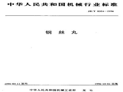 本标准是在充分的试验研究,分析对比的基础上制定的。制订在中非等效采用丁丧国不标MI:S一S51C用于清和弧化的钢磨检,弹和包销丝丸,以及转铁格知丸联其荐巨标带DIN201效密钢丝丸和原苏联标准FCCT11964%工业用铁充和烟北?等国外标准。根据日前如丸水平,兼顾既用回收钊丝叉用新钢丝制造辆丝丸的现妆,在木标催中涂对钢丝力料心免许误差要求比美国军标、原联邦修国标准略低之外,其偿指标基术制当,本标准从199%6年30月1日起实施.1S6年10斤1日起所有钢些丸产品均应符合标准的规二,本标出全国诗造械标准化技术委员会提出并归。本标准起中单化,济岗博锻机械研究断,策山市钢丝抛丸厂本标准主要起草人,双同庆、患道,本标准于1996年4月11日首次发市。1范围