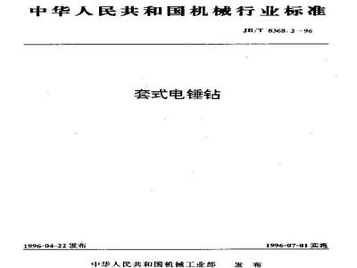 本标准规定了套式电锤钻的型式和尺寸、材料和硬度、外观和表面粗糙度、性能试验及标志和包装的技术规范。 本标准适用于在砖、砌块及轻质墙等材料上钻孔用的直径从25~150mm的套式电锤钻。 JB/T 8368.2-1996 套式电锤钻 JB/T8368.2-1996 标准下载解压密码:www.bzxz.net