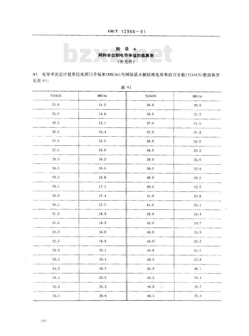 电导率法定计量单位兆西门子每米(MS/m)与国际退火铜标准电导率的百分数(%1ACS)数值换算A1