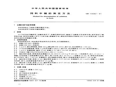本标准规定了饲料中福的测定方法。本标准适用于饲料中福的测定。 GB 13082-1991 饲料中镉的测定方法 GB13082-1991 标准下载解压密码:www.bzxz.net