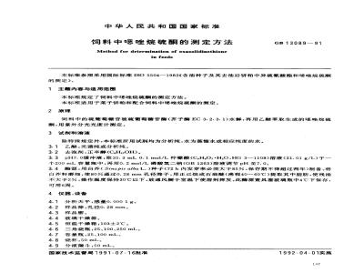 中文名称:饲料中 恶唑烷硫酮的测定方法
