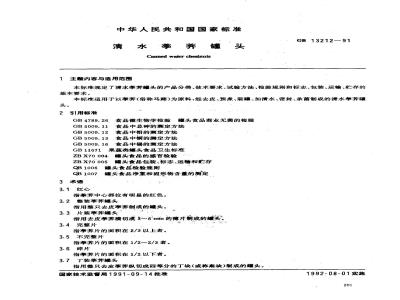 ZBX70 005头食品包装、标志、运输和存QB1006罐头食品检验规则