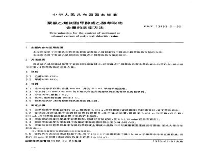 中文名称:聚氯乙烯树脂甲醇或乙醇萃取物含量的测定方法