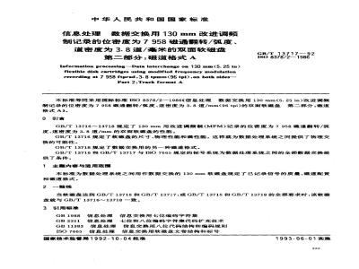 GB/T13716~~13718规定了130mm用改进调频制(MFM)记录的位密度为7958磁通翻转/孤度、道密度为3.8道/mm的双面软磁盘的性能。GB/T13716规定了软磁盘的尺寸、物理性能和磁性能。这样就为数据处理系统之间提供了物理交换的可能性。